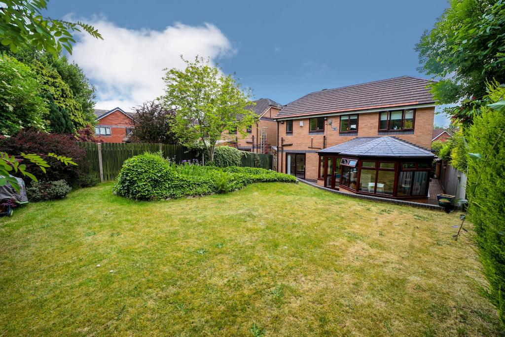 To the rear of the property is the great sized Garden with a Paved Patio and raised Turfed Lawn with mature shrubbery and greenery.