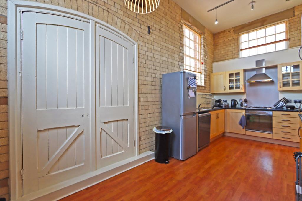 Kitchen/Diner (6.07m x 2.77m) - The kitchen diner benefits from having triple aspect windows, a gas hob with extractor fan above and integrated cooker. There is also the feature loading door from the property's brewing days. There is also a walk in storage cupboard with plumbing for a washing machine.