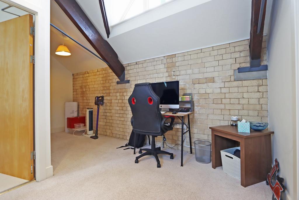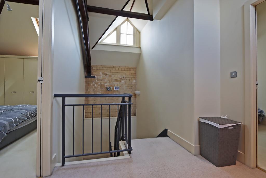 First Floor Landing - This multi-functional space can also be used as an office or additional storage, with rafters up the ceiling along with the original dormer window above the staircase.