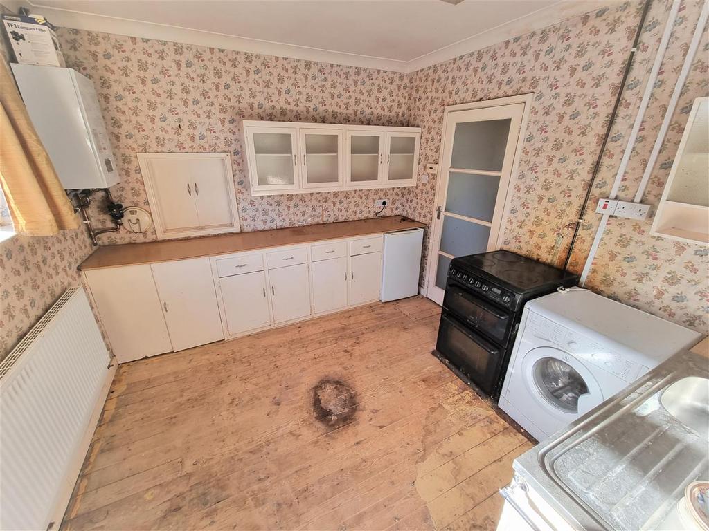 Kitchen - 3.53m x 3.11m - Rear and side aspect window. Range of cupboard units and drawers. Laminate worktops. Sink drainer with mixer taps. Space for a range of appliances. Radiator. Wall mounted fitted modern Glowworm gas fire combination style boiler. Rear aspect door leading to a porch / utility area.