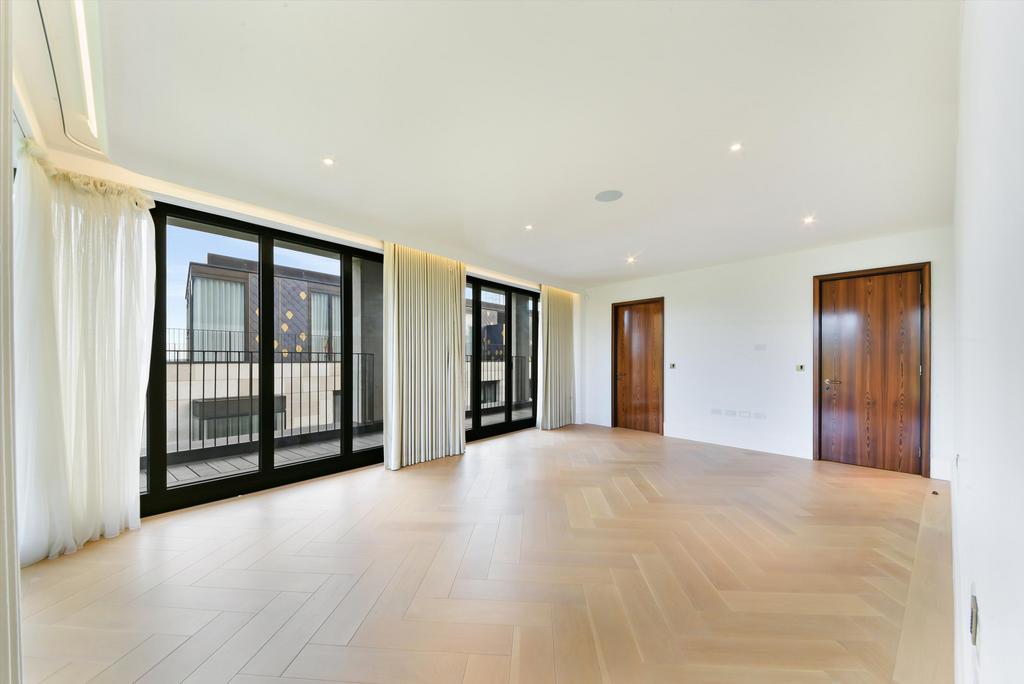 The property comprises an entrance hall, double reception room, open plan kitchen, principal bedroom with dressing room and en suite bathroom, four further bedrooms with en suite bathrooms, office, study, utility room and a guest cloakroom. The property also benefits from direct lift access to both floors, floor to ceiling windows throughout, wrap around terrace and 24hr security.