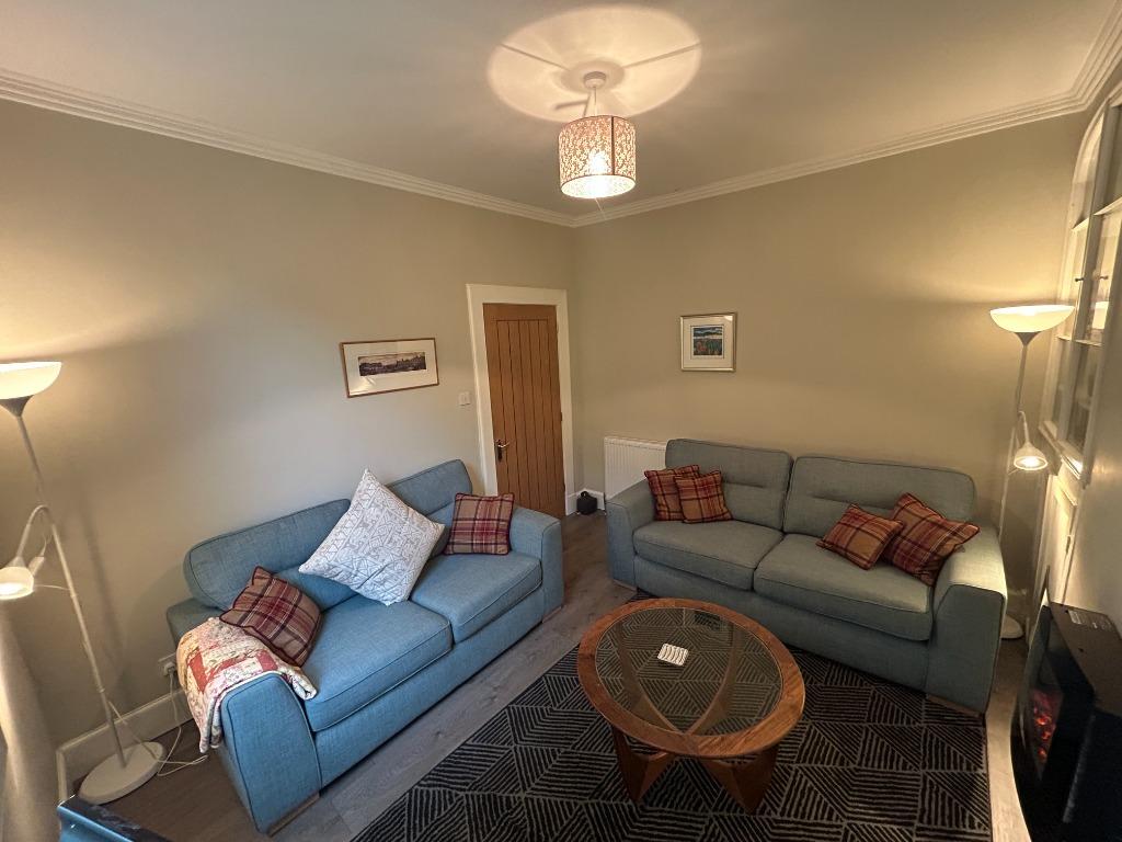 Beautifully presented unique cottage located in the private grounds of Lufra House, off Granton View. Beautifully furnished with all white goods included. The property offers a lounge, kitchen, dining room, shower room with W.C, one double bedroom with en-suite shower room, twin bedroom. The property benefits from gas central heating and double glazing. There is also additional storage with power located next to the private courtyard. Private parking. Burglar alarm fitted recently. Professional let only. No pets.