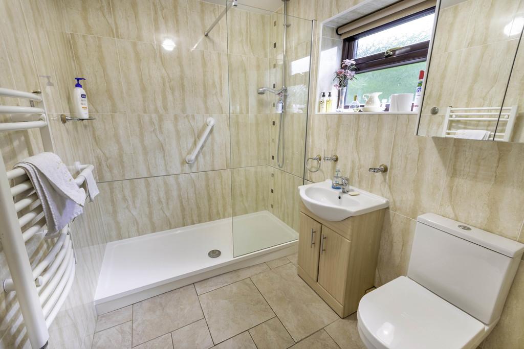 SHOWER ROOM quadrant shower enclosure, WC, basin, fully tiled