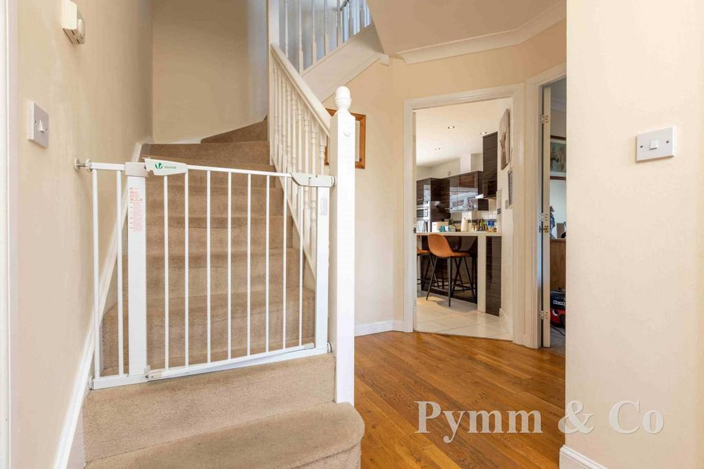 Guide Price £450,000 - £475,000 Located on a private cul-de-sac and overlooking the park this versatile five bedroom detached family home offers all the luxuries of modern day living in the highly sought after suburb of Sprowston. Sold with the added benefit of No Onward Chain this stunning property must be viewed to avoid disappointment.