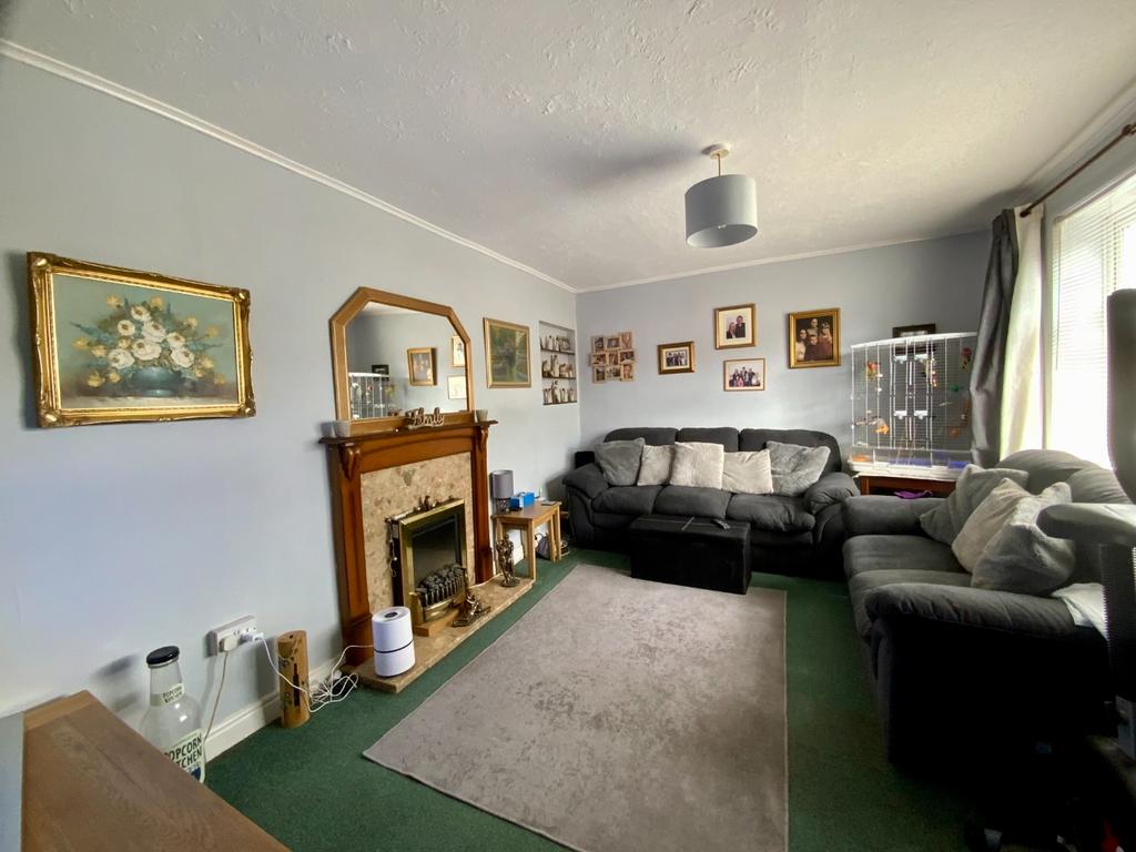 Sitting room coal effect fire set in a feature surround with marble effect, hearth and back. UPVC double glazed window to the front elevation and central heating radiator.