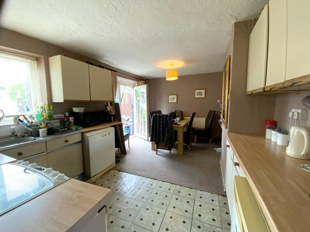 Dining kitchen fitted with wall and base units, rolltop worksurfaces with stainless steel sink and drainer. UPVC double glazed window overlooking the rear garden, PVC patio doors leading out onto the rear garden and central heating radiator.