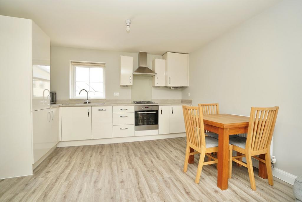 A light contemporary open plan double aspect room with UPVC windows to front and rear aspects, fitted in a range of cream base and wall mounted cabinets with complementing laminate work surfaces and up-standers, drawer units, pan drawers, integrated automatic dishwasher, integrated stainless steel electric oven and gas hob with bridging unit and extractor fitted above with glass back plate, integrated fridge freezer and automatic washer/dryer, single drainer stainless steel sink unit with mixer tap, double panel radiator, TV point, telephone point, composite floor covering.