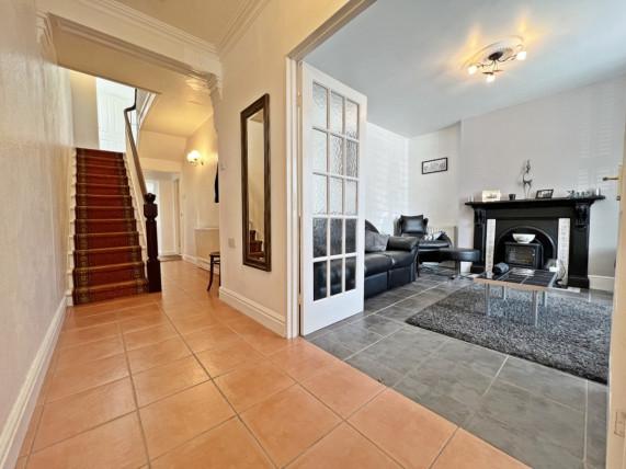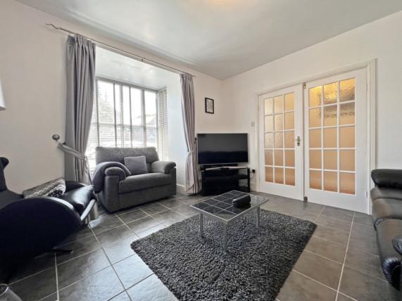 LIVING ROOM (140 x 126 approx.) Double glazed panel doors. Attractive bay window to the front. Feature fireplace with hearth and mantel. Tiled floor.