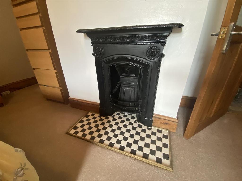 Bedroom 1 - A large master bedroom which features a tall vaulted ceiling with exposed beams, arched window to the side of the house with garden views. Fitted wardrobe with sliding glass doors ans installation for wall mounted TV. Chimney breast with feature period style fireplace. Airing cupboard housing the wall mounted gas fired combi boiler. Radiator.