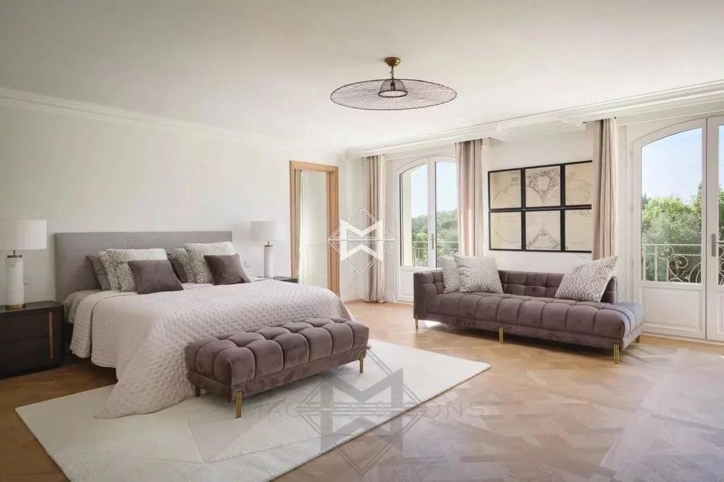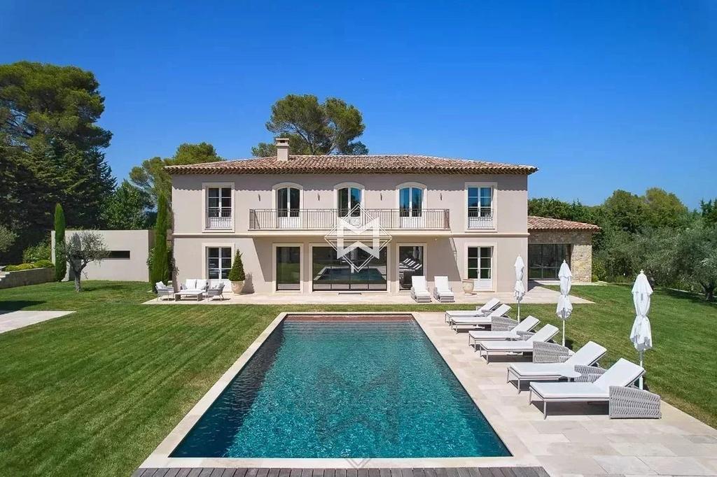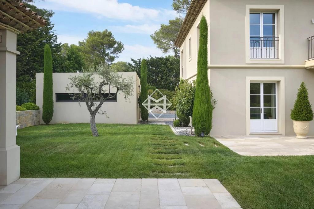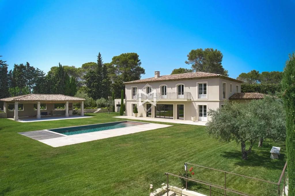 Sole agent : The Magrey & Sons group is pleased to present for sale a splendid property of approx 480 m2 in the heart of a magnificent flat landscaped garden overlooking one of the most popular hills of Mougins near golf courses, international schools and of the fine sand beaches of Cannes. Nestled in absolute calm, this sumptuous recently designed bastide (still under ten-year warranty) will immerse you in the heart of our charming Provence with its architecture combining noble stones, solid parquet, large volumes and large openings letting in light. The charm of the interiors is enhanced by a splendid garden of 3,300 m2 in the colors of the South between olive trees, lavender and cypresses allowing you to enjoy the heated swimming pool and the pool house around a barbecue with friends in an idyllic setting. This favorite property with 5 en-suite bedrooms is very pleasant to live in since it offers a vast space on one level as well as a peaceful living environment thanks to its fluid distribution, its large spaces inspiring freedom and conviviality, as well as its services since you will find a games room, a real cinema room, a very efficient home automation system, a heated swimming pool, a summer kitchen, a perimeter alarm, a double closed garage as well as a large car park.