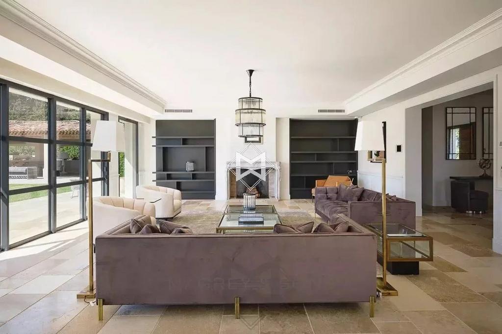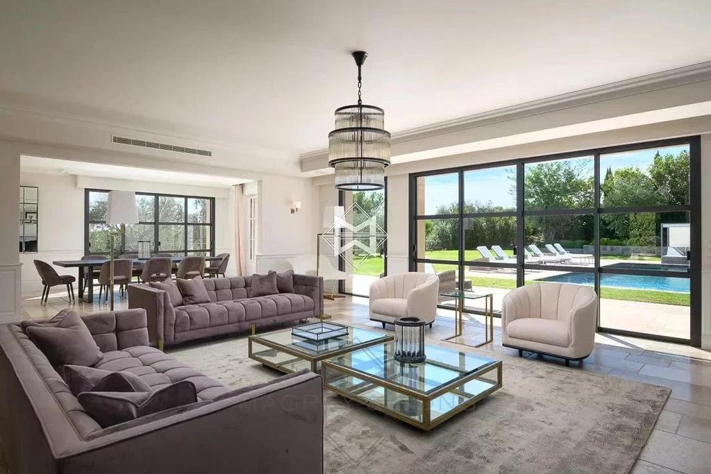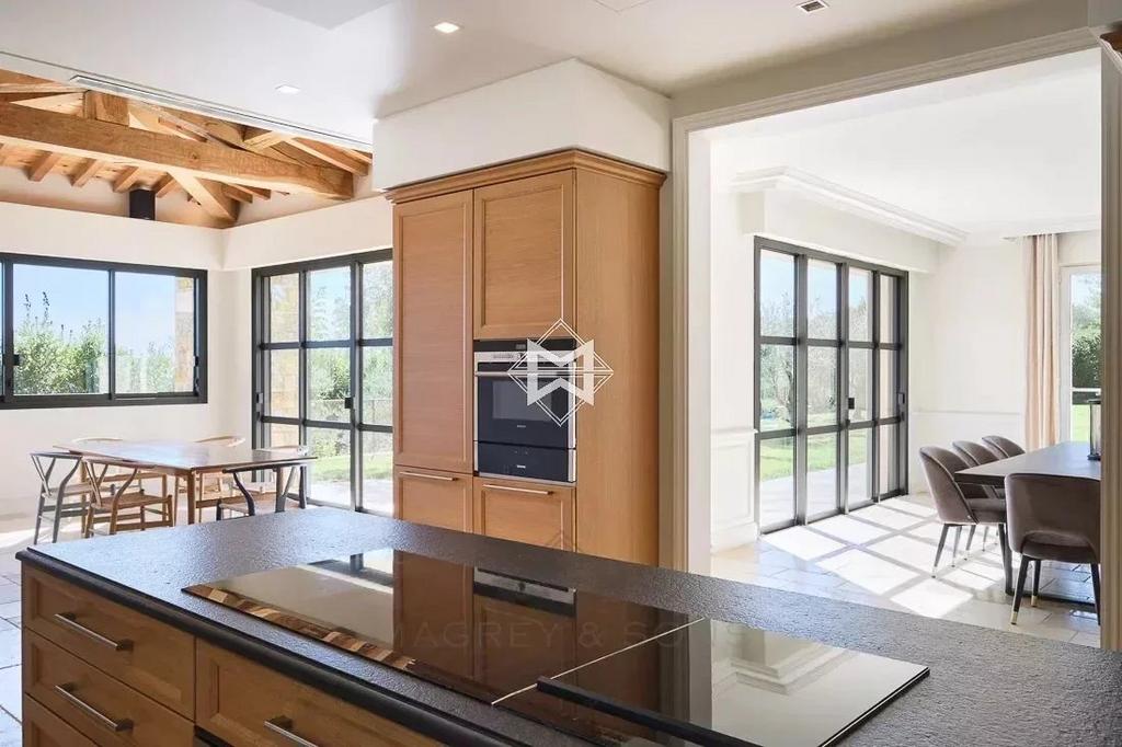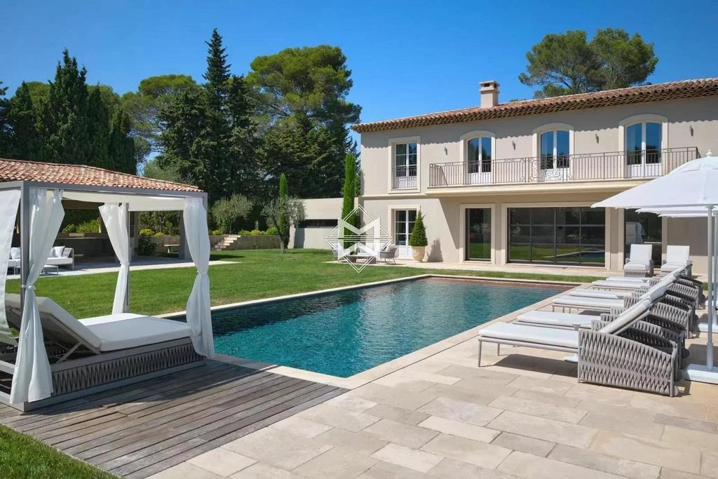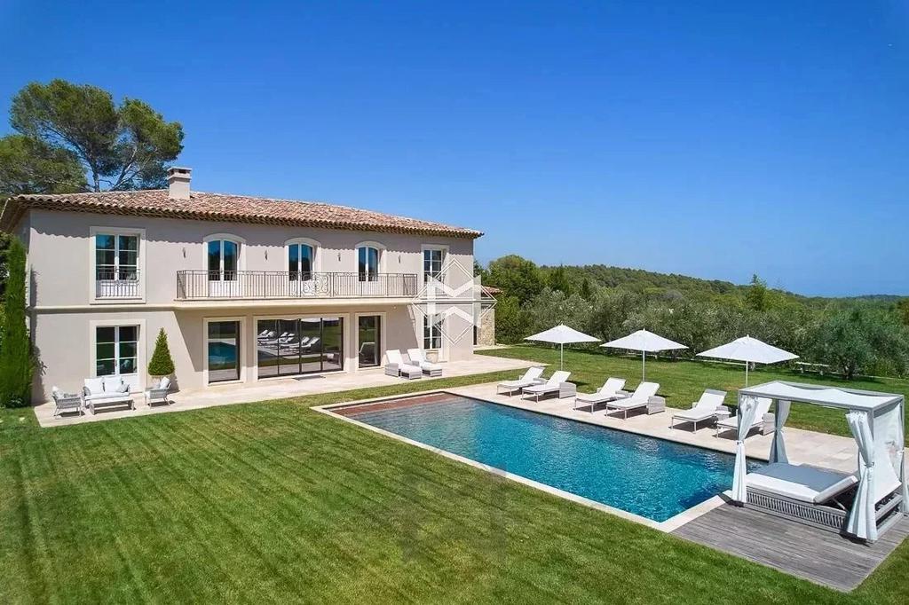 Sole agent : The Magrey & Sons group is pleased to present for sale a splendid property of approx 480 m2 in the heart of a magnificent flat landscaped garden overlooking one of the most popular hills of Mougins near golf courses, international schools and of the fine sand beaches of Cannes. Nestled in absolute calm, this sumptuous recently designed bastide (still under ten-year warranty) will immerse you in the heart of our charming Provence with its architecture combining noble stones, solid parquet, large volumes and large openings letting in light. The charm of the interiors is enhanced by a splendid garden of 3,300 m2 in the colors of the South between olive trees, lavender and cypresses allowing you to enjoy the heated swimming pool and the pool house around a barbecue with friends in an idyllic setting. This favorite property with 5 en-suite bedrooms is very pleasant to live in since it offers a vast space on one level as well as a peaceful living environment thanks to its fluid distribution, its large spaces inspiring freedom and conviviality, as well as its services since you will find a games room, a real cinema room, a very efficient home automation system, a heated swimming pool, a summer kitchen, a perimeter alarm, a double closed garage as well as a large car park.