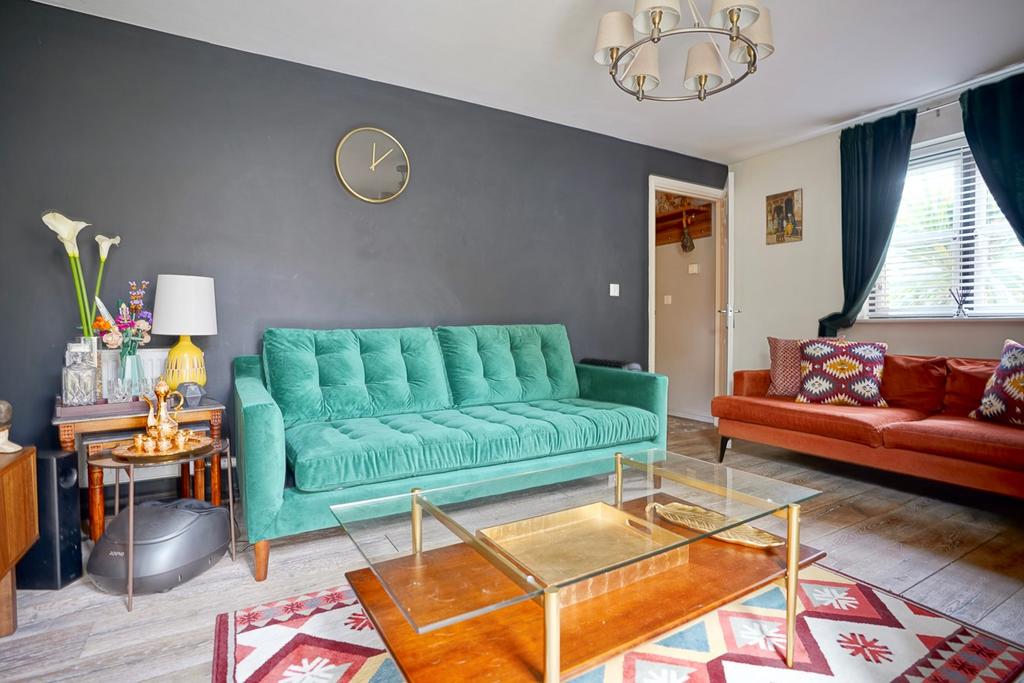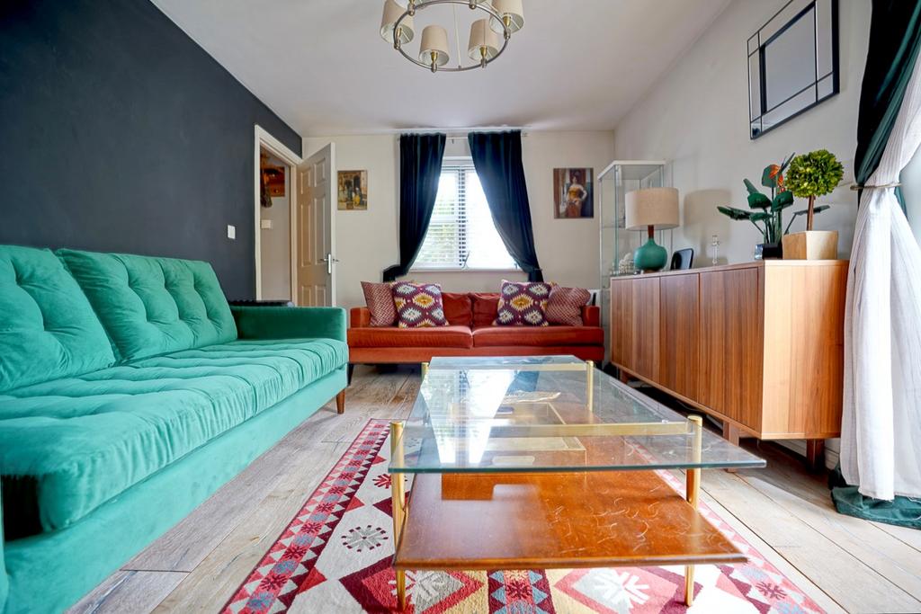 A double aspect room with double glazed window to front and double glazed French doors to garden, two radiators, engineered wood flooring.