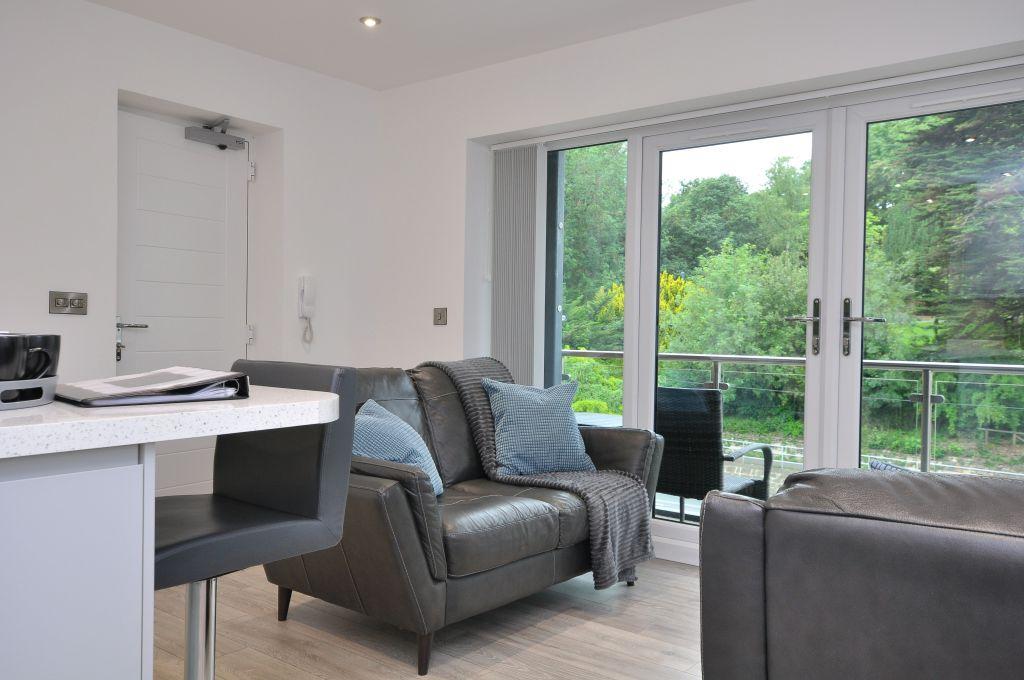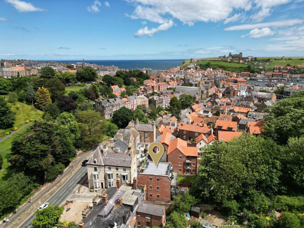This luxury apartment has stylish interiors with a balcony overlooking Pannett Park and private parking, a rare find this close to the town centre. Built in 2019 as one of three self-contained holiday apartments that share the same layout, interior design, balconies to the front, and have allocated parking. The building is a striking piece of architecture with a traditional brick construction under a slate roof and having a glazed front façade with balconies. There is a double garage, which goes with Apartment 1, and a communal entrance on the ground floor with a stairwell to the upper floors. Each apartment spanning the whole floor plus the private balconies. The contemporary design comprises an open plan living room with a lounge area leading out onto the balcony at the front with a modern fully equipped kitchen having high-gloss cabinets with a breakfast bar and highchair seating. There is a separate utility room with fitted cabinets and integrated appliances including a washing machine and dryer. At the back of the apartment there are two double bedrooms with the principal bedroom having an en-suite shower room and there is a second bathroom suite. Both bedrooms have glazed doors that lead out onto the private balcony. The apartment benefits from having modern underfloor heating and double-glazing throughout making them energy efficient and economical to run. Directly outside there is a marked parking bay for one vehicle. The apartment is currently a highly successful holiday let and can be sold fully furnished with bookings in place, making this an attractive investment.