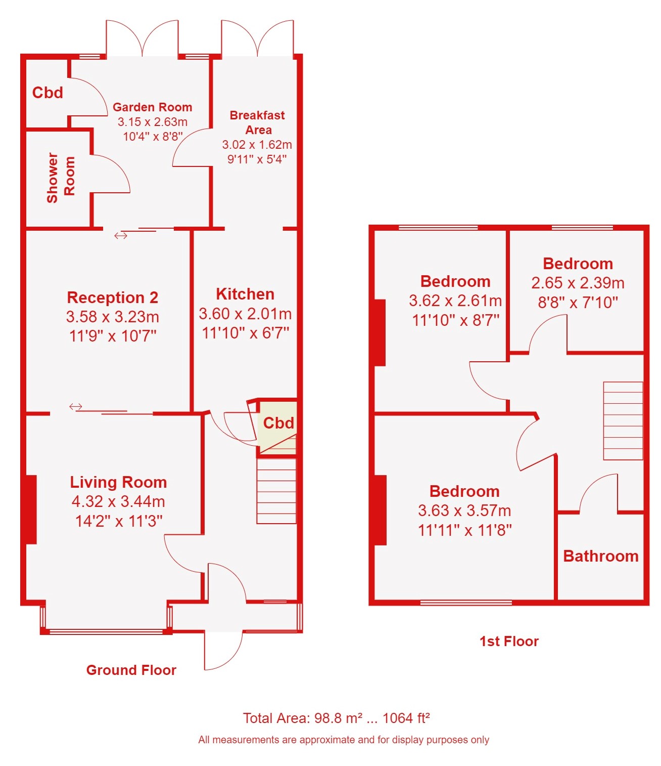 GROUND FLOOR: Enclosed Entrance Porch and door to: Entrance Hall with under stair storage* Spacious Living Room with open fireplace, & sliding doors to 2nd reception room * Conservatory * Shower/WC * Kitchen Breakfast Room with door to garden.