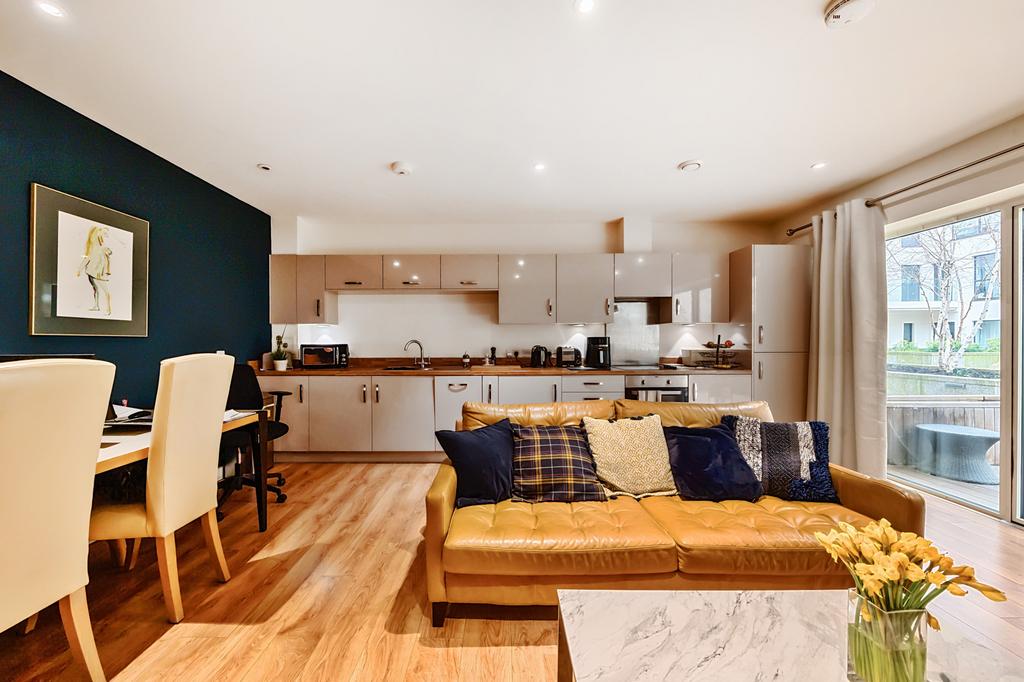 Adjacent to the living room, the property further benefits from a private outdoor patio space opening on to a communal courtyard.