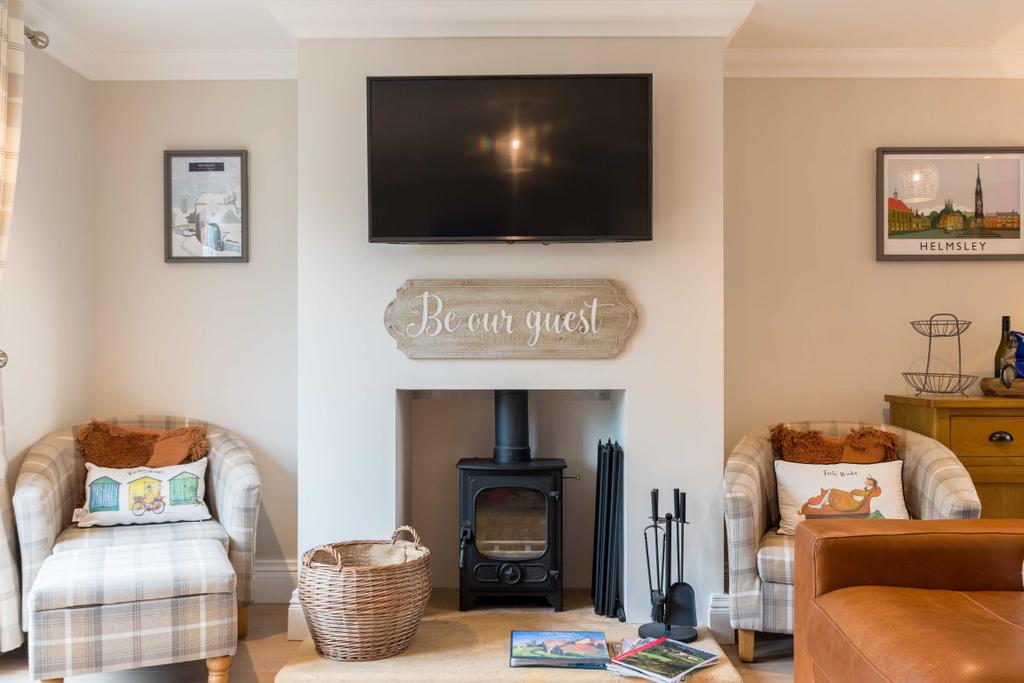 14, Black Swan Yard is a pretty three bedroom home, arranged over three floors in this private, quiet and perfectly situated development just behind the market square in Helmsley. The house offers open plan living space on the ground floor with a well equipped and well designed kitchen to one end and a bright living space with doors out on to the terrace at the other. The room has a log burner as its centre piece, perfect for the winter months!
