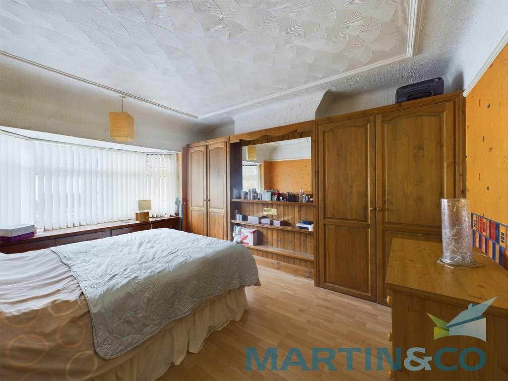 MASTER BEDROOM 14' 6" x 9' 11" (4.42m x 3.04m) A great sized master bedroom with wood effect flooring, fitted wardrobes, radiator, and power points and a UPVC double glazed bay window overlooking front garden.