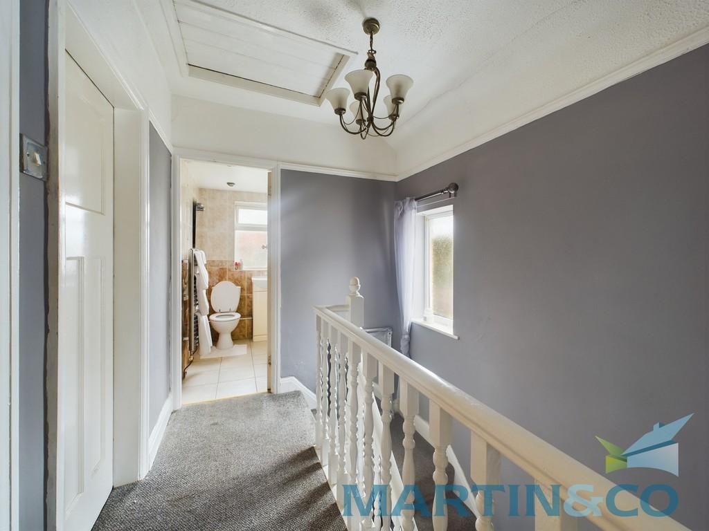 LANDING 8' 6" x 3' 2" (2.61m x 0.99m) Having carpet flooring, UPVC double glazed frosted window, access to all first-floor rooms and loft access