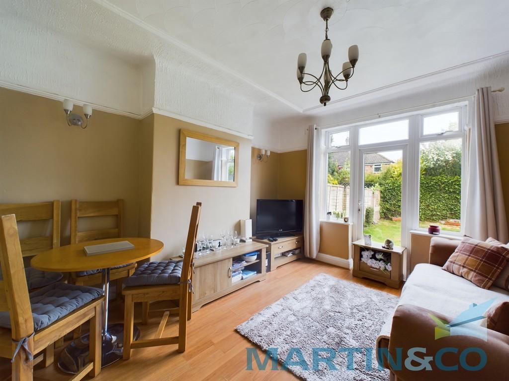 LOUNGE 2 12' 4" x 11' 2" (3.76m x 3.41m) A light and airy living room having wood effect flooring, radiator, power points and a UPVC patio door as well as UPVC double glazed windows offering views into the rear garden