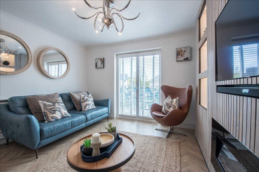14'0" x 11'9" (4.27m x 3.58m) overall, picture window incorporating French door with outlooks of Pembroke Castle plus access to the sun-trap Balcony. Feature media wall incorporating log-effect electric fire, television and display recesses etc.