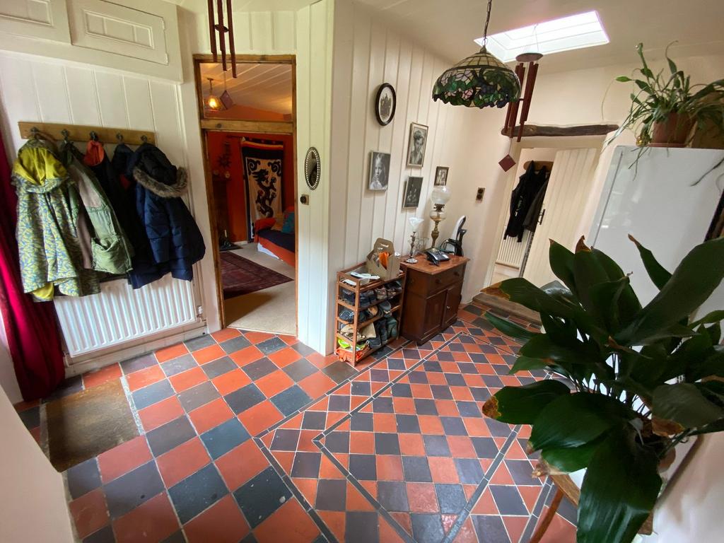 With half glazed front entrance door, Red and Black quarry tiled flooring, radiator, tongue and groove ceiling, Velux roof window.