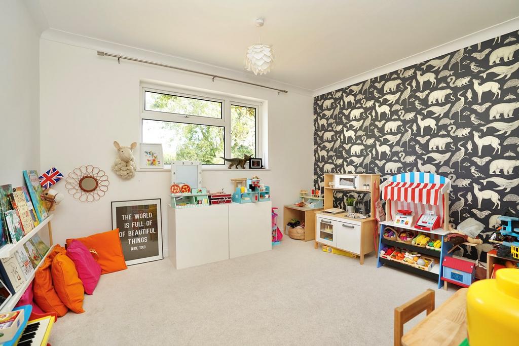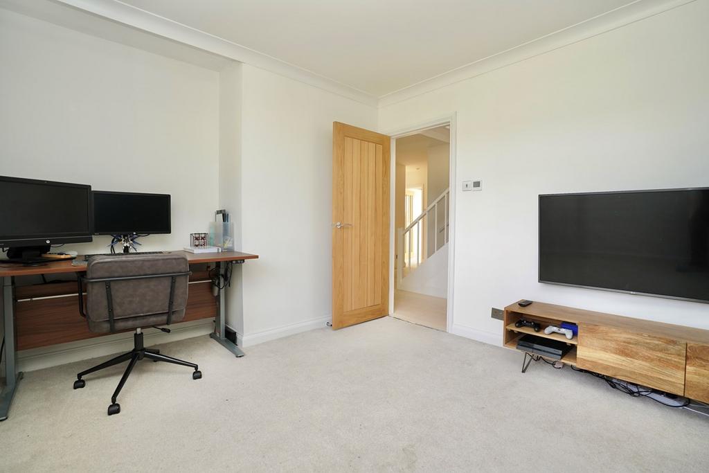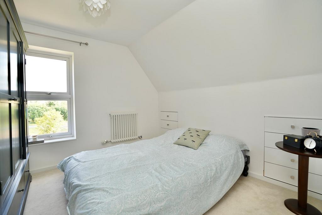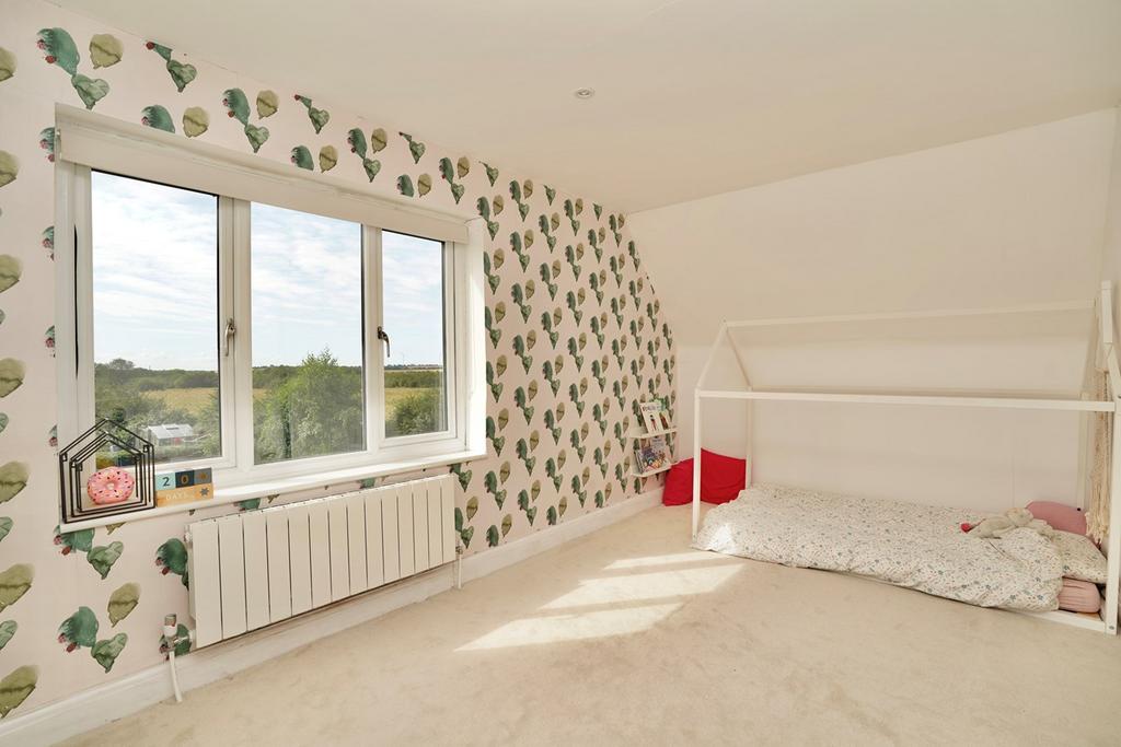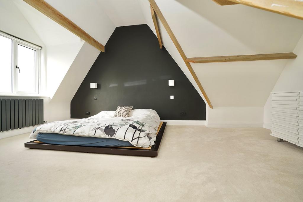 Wall light points, vertical contemporary anthracite radiator and additional anthracite radiator, windows to rear aspect, offering interesting design elements and roof lines with exposed timber work, recessed lighting, window to front aspect.