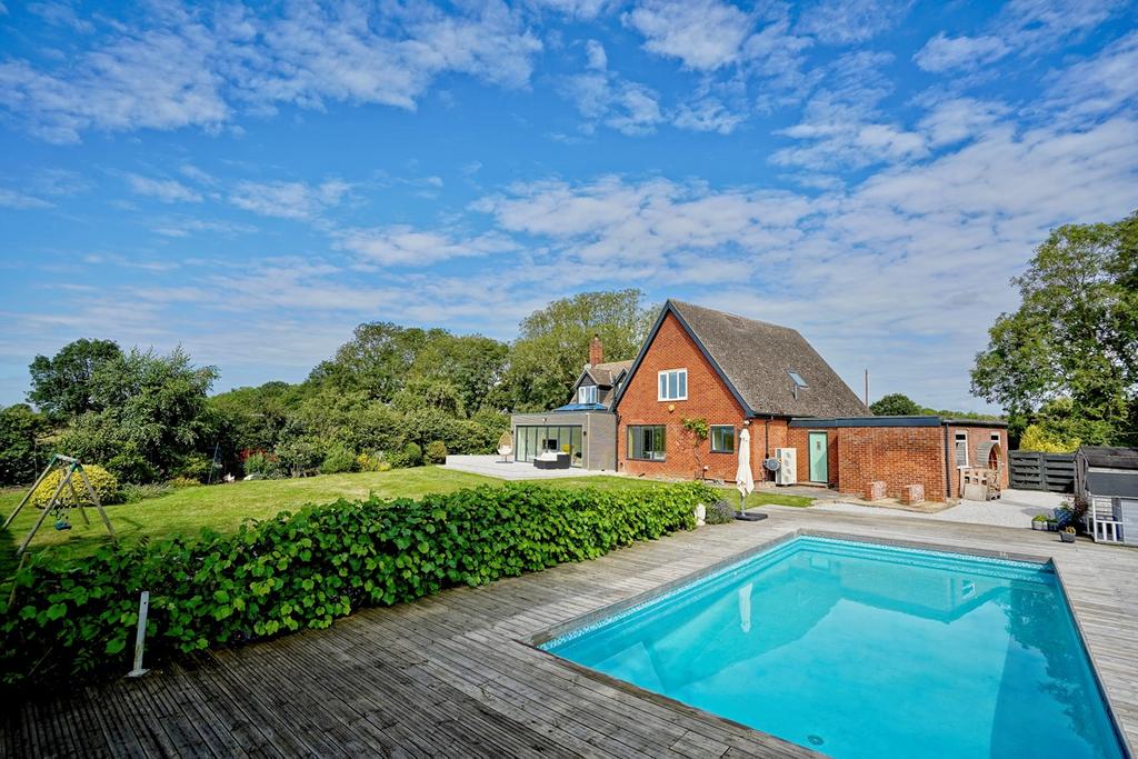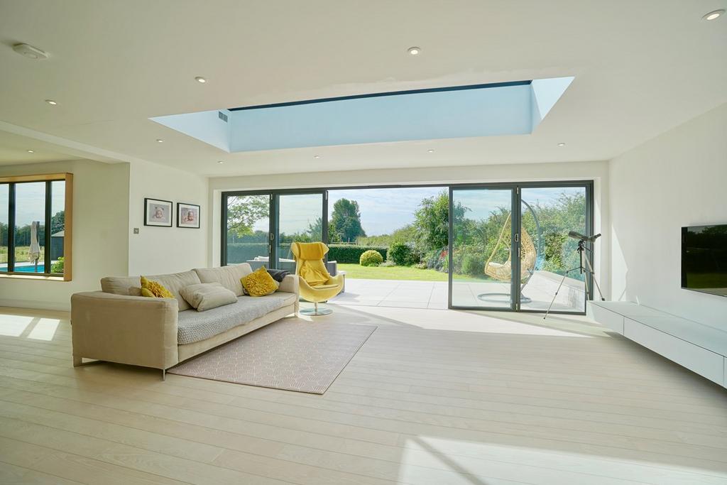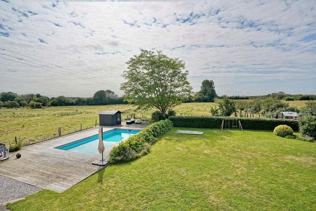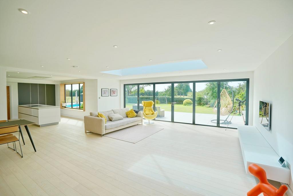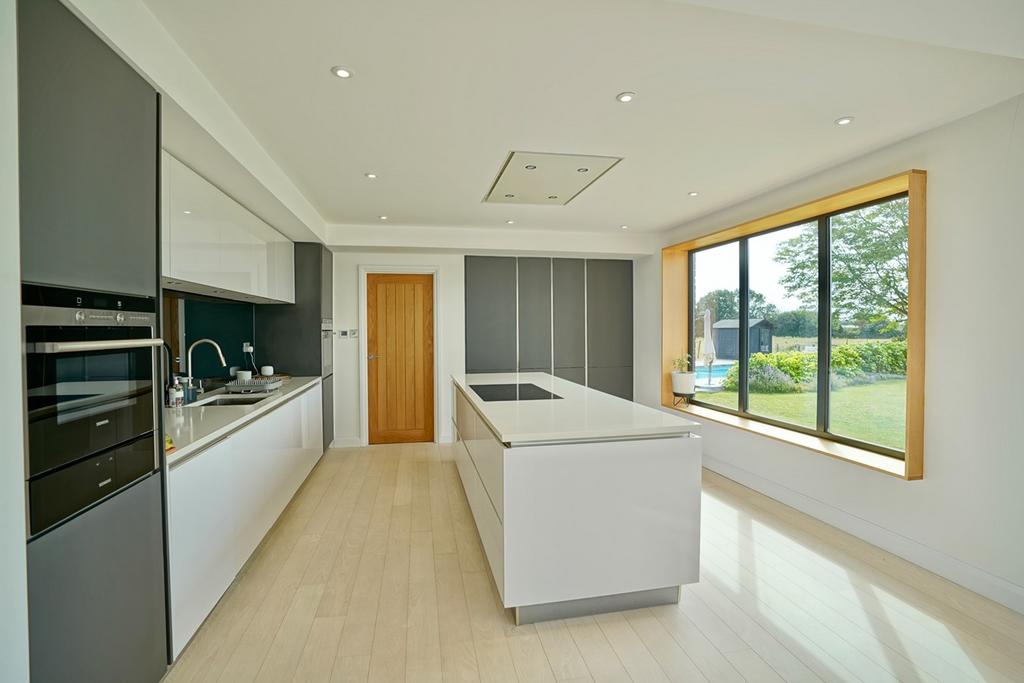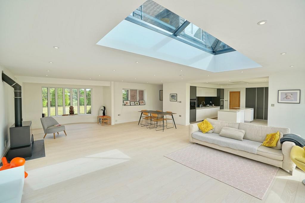 This stunning extended individual residence occupies a wonderful semi rural location with fabulous open field views. Offering substantial yet versatile family accommodation the house is centred around an impressive 37' x 33' reception space incorporating a bespoke contemporary German kitchen featuring quartz work surfaces and high end appliances.