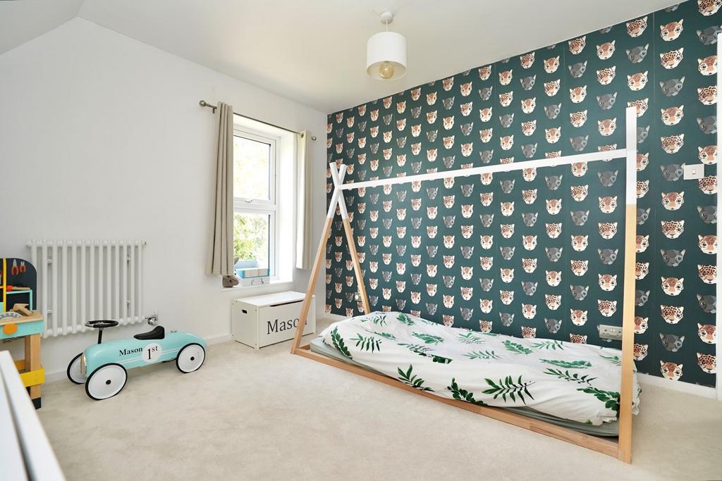 Eaves storage cupboard, exposed timber detailing, access to insulated loft space with ladder.