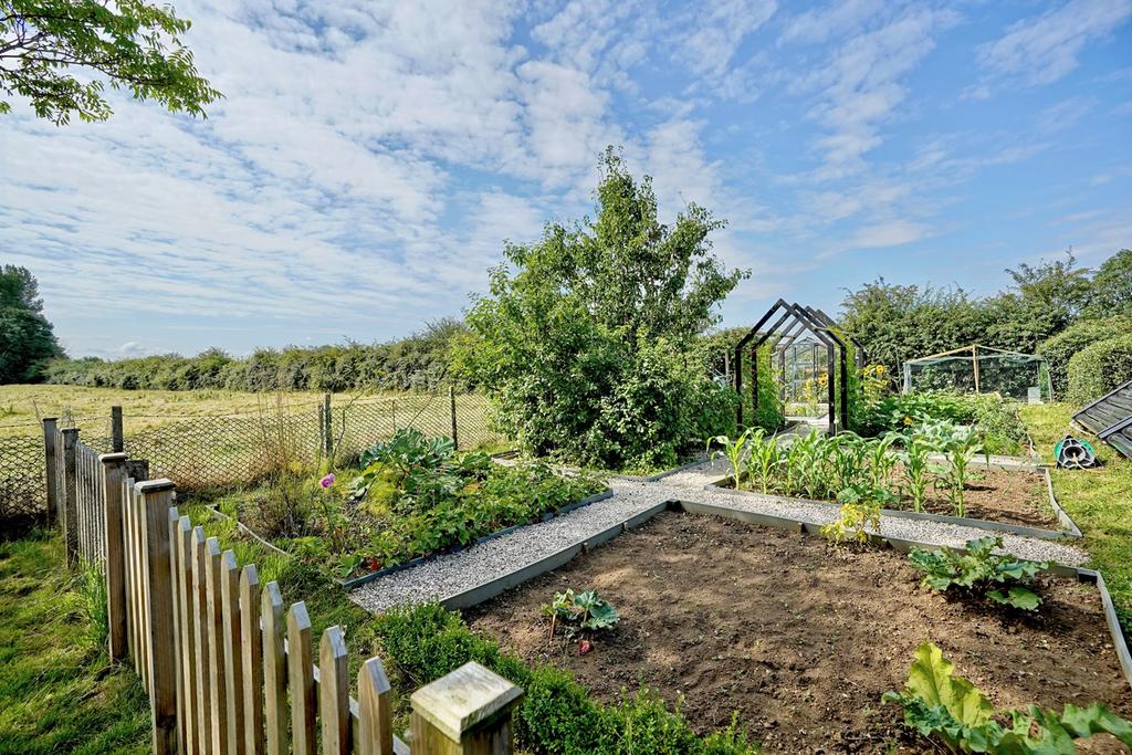 The property stands in a generous plot approaching half an acre (stms). There is a private gated frontage enclosed by low brick walling and mature ornamental shrubs and trees. There is an expanse of lawn and an extensive gravel driveway giving provision for four to six vehicles. The gardens are primarily lawned with lighting and gated access extending to the rear. The side area is laid to granite chippings and neatly arranged with timber decking leading on to the poolside. There is a well maintained 10m heated swimming pool heated by solar panels with dedicated air sourced heat pump and a surrounding sun deck and a shed containing plant room. The pool deck leads down to an area of lawn with mature trees and a neatly tended vegetable preparation area. The vegetable beds are edged in timbers with a central timber arbour and green house. The property is surrounded by rolling countryside and open meadows . There is a raised terrace finished in porcelain tiling to the rear of the kitchen with mature hedgerow screening to the westerly boundary.