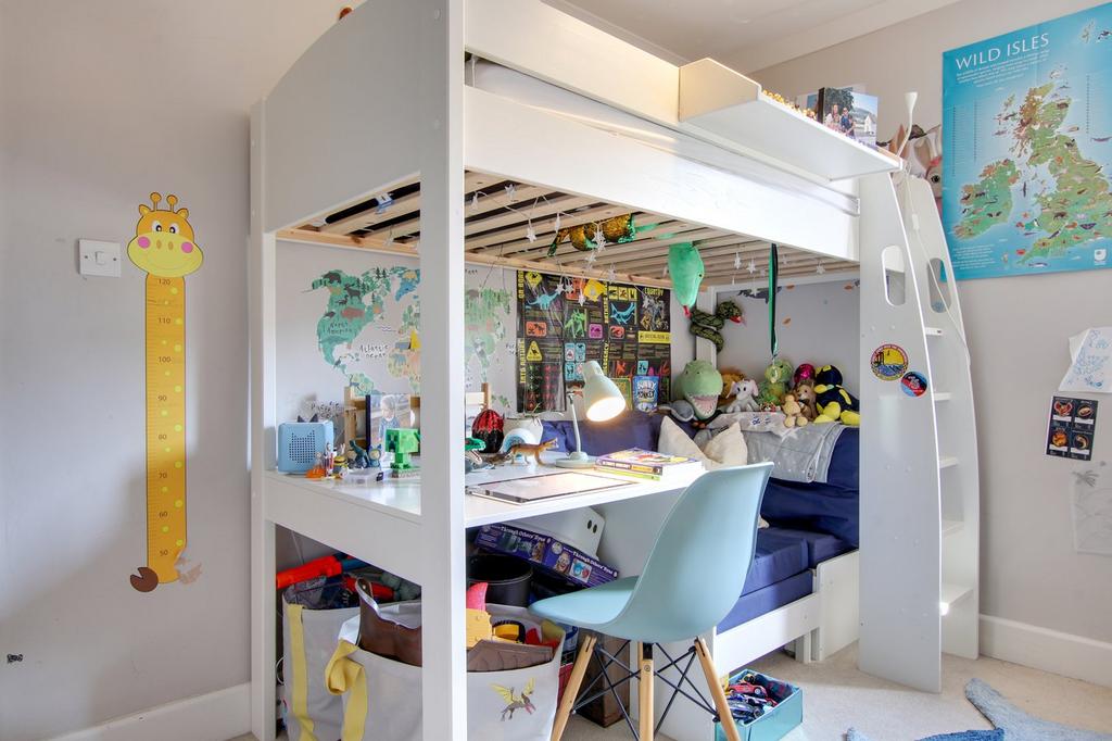 The first floor accommodation comprises three bedrooms. The main bedroom is of particular note with a vaulted ceiling and a separate walk-in dressing room making this family home a standout option. The second bedroom has generous proportions, good storage and enjoys the benefits of an ensuite shower room. The third bedroom faces south and benefits from leafy views.