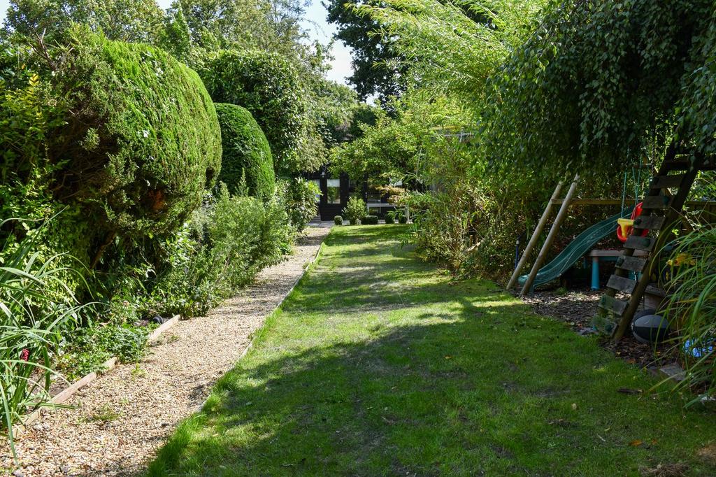 The property benefits from an ample gravel driveway providing parking for one car. There is side access wide enough for a dinghy, which leads to the highly impressive landscaped 100 ft south facing lawned rear garden with a large patio, ideal for al fresco dining. The boundaries are of close boarded fencing and mature hedges with flower borders providing a good level of privacy and seclusion. To the rear of the garden is a large wooden garden room which is insulated with heat, power, WIFI, and hot water, and currently used as a home office, although easily provides ancillary accommodation or a gym or yoga studio. In the garden is also a wooden shed providing ideal storage for bikes and sailing kit.