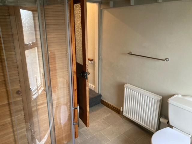 Ample cupboard space, plate rack, gas cooker, extraction canopy over. Laminate worktops, one and half bowl sink, mixer tap, plumbing for washing machine, Upvc window, wall mounted gas boiler, Upvc douible glazed door, understairs storgae with power.