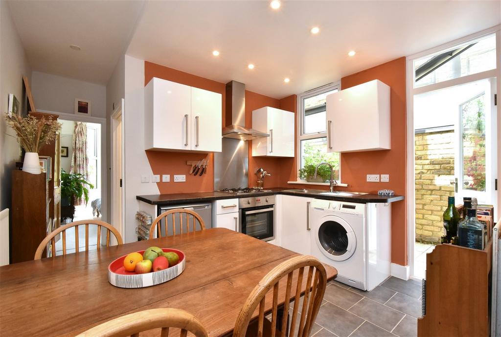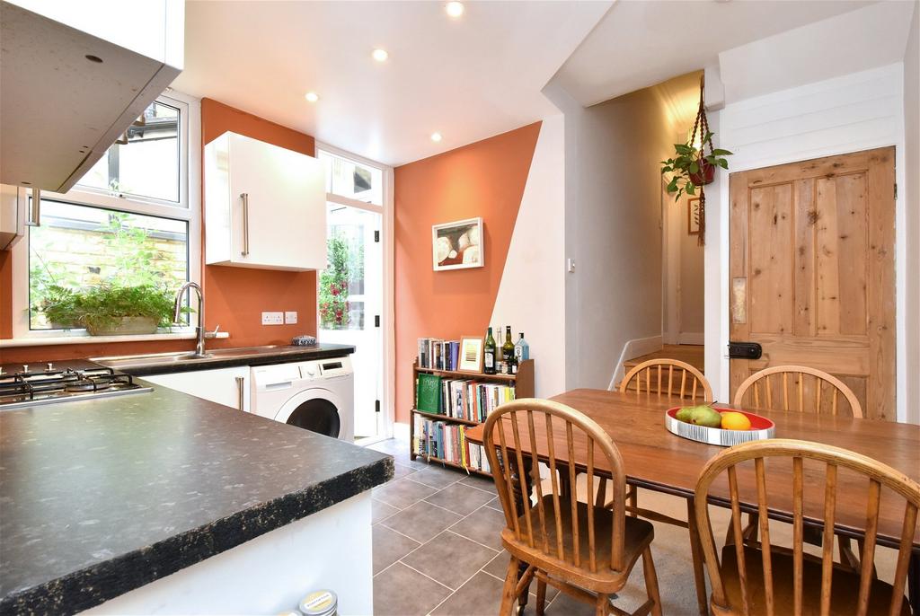 The distinctively decorated two-bedroom property boasts tastefully restored period features, original wooden floors and a modern kitchen-breakfast room. In the front reception room, a tiled Victorian fireplace and bay window overlooking the rose-lined front courtyard make for a relaxing and light filled space.