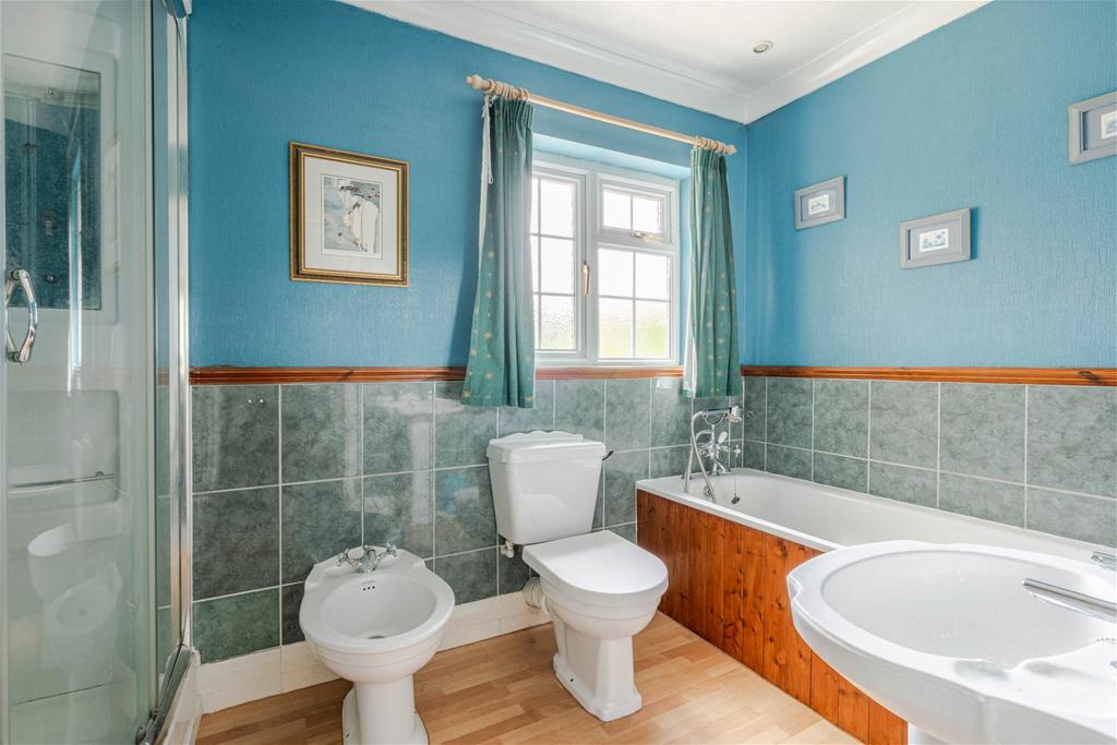 The generous accommodation extends to just under 2,200 sq.ft. (excluding the garaging). The ground floor is entered from the side to an entrance hall with parquet flooring which continues into the front living room featuring a wood-burning stove. The kitchen is adjoined by a breakfast room and the layout flows superbly to the separate dining room and lovely garden room. The garden rooms has a conservatory to the side and enjoys an open outlook over the private rear garden. Completing the ground floor there is a large utility room and downstairs WC. On the first floor, there are four large double bedrooms and a smaller fifth bedroom. The family bathroom is equipped with both a shower unit and a bath. The principal bedroom benefits from a private en-suite shower fitted with a luxurious walk in shower and rainfall showerhead over. The two rear bedrooms have fitted wardrobes and views across the garden to the fields at the back.