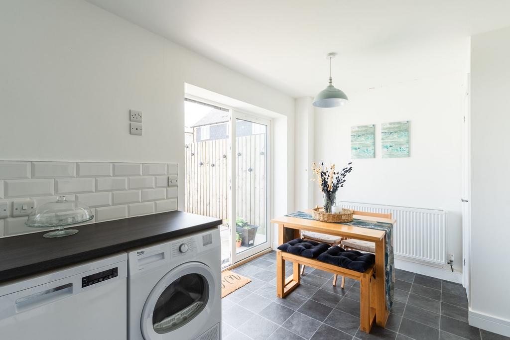 The kitchen comes equipped with cooker and hob, washing machine, dishwasher and integrated fridge/freezer.