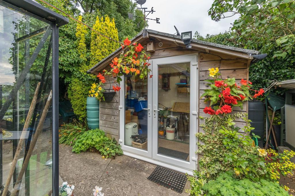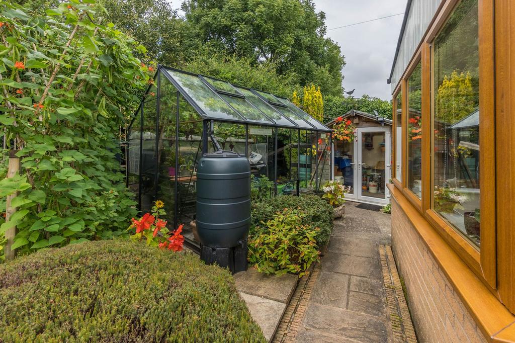 A generous sized garden to the rear with many beautiful features including rockery features with a water feature running through it, established hedges, trees and shrubs with also a greenhouse and summer house to the rea. To the front is a patio seating area and rockery features with space for potted plants. Ample driveway parking.