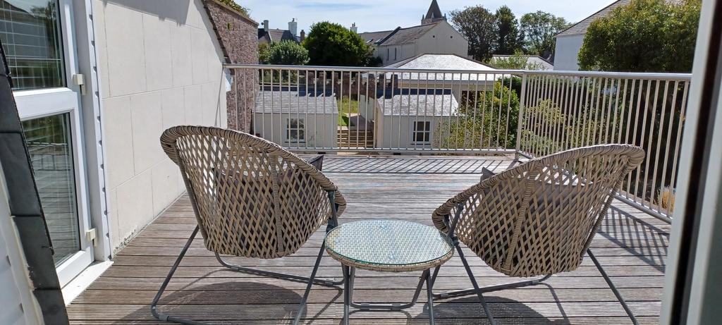 The rear entrance to the property just off the historic Connaught Square and the Island Hall, it is also opposite the museum and library, so in addition to the front entrance off QEII St offers convenience and easy access to many of the aspects of life in St Anne.