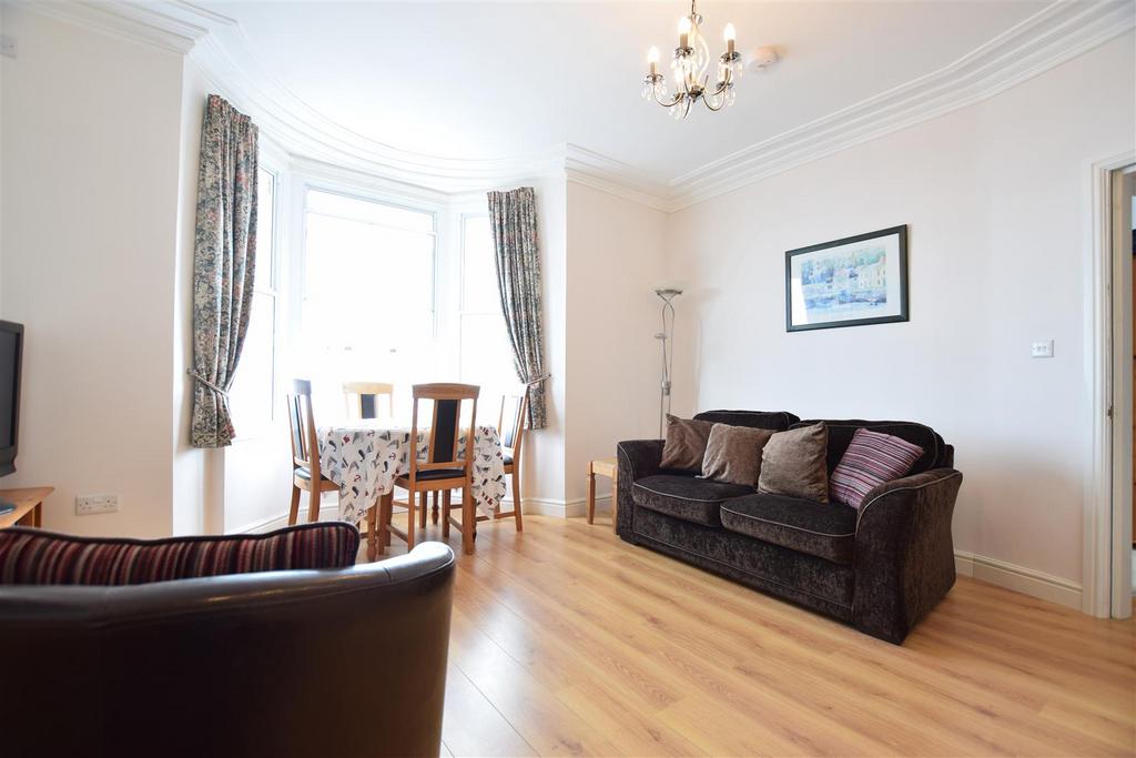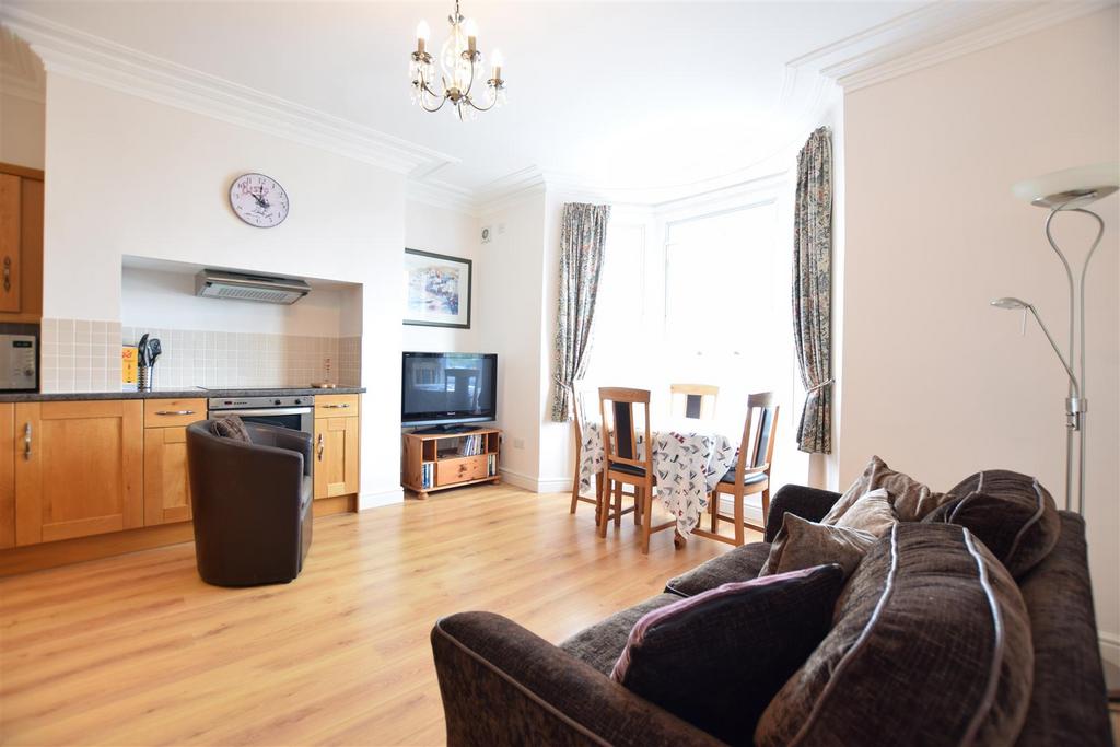 Lounge/Kitchen - With a Bay window having stunning views over the Bay towards the Castle and Scalby Mills, two seat sofa, tub chair, dining table and 4 chairs TV and radiator