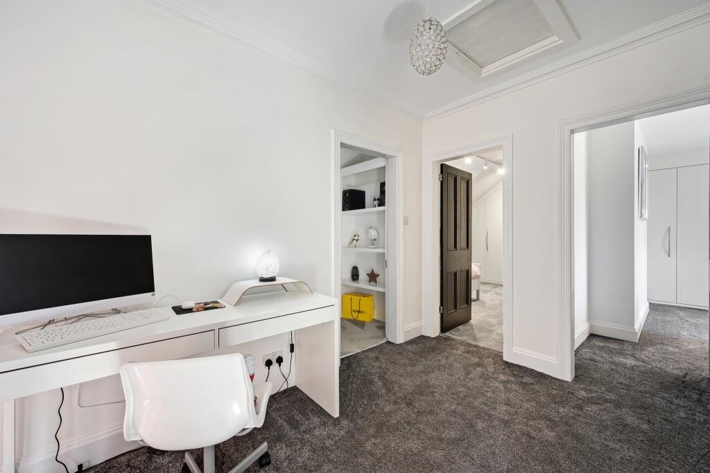 The interior of this beautifully presented property comprises two spacious receptions rooms, dining room and fitted kitchen on the ground floor. The first floor consists of 3 bedrooms and the family bathroom. The second floor has 3 further bedrooms and an additional bathroom. The exterior boasts a private rear garden that has had recently undergone improvements including the converted garage which is now used as a gym, decking areas and further chill out zones perfect for enjoying the summer months. The property also benefits from an extensive cellar which provides ample space for storage.
