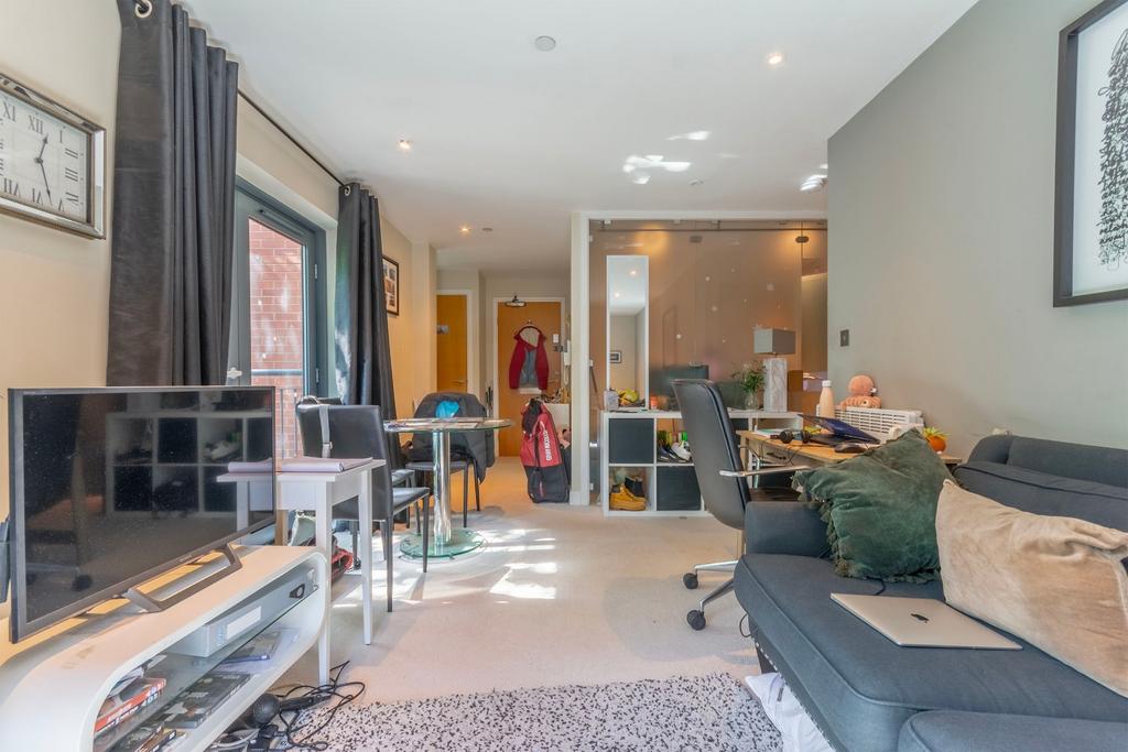 The property comprises of living area with balcony. A separate kitchen with integrated appliances and room for a dining table and chairs.
