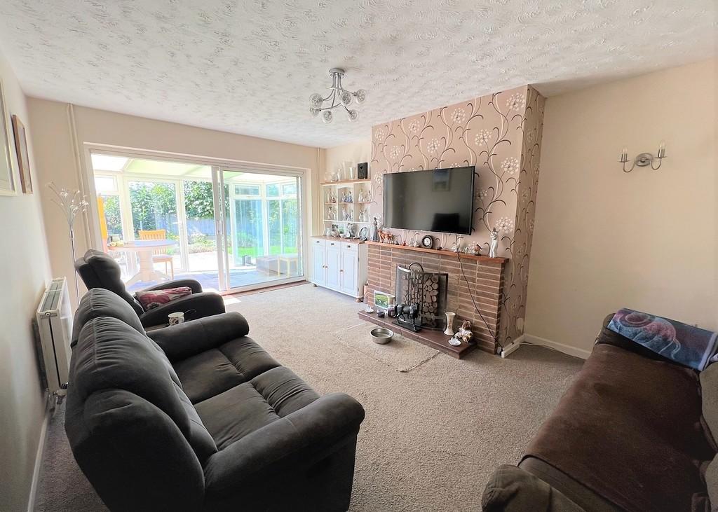 LOUNGE 17' x 11' 10" (5.18m x 3.61m) Having a feature brick fireplace with tiled hearth, radiator, double glazed patio doors to the conservatory, wall light points.