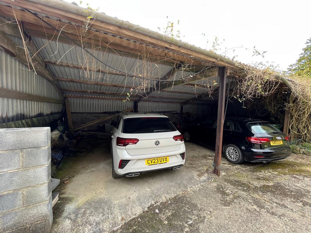 42' 0" x 22' 0" (12.80m x 6.71m) of steel frame construction with 3 separate bays providing Garage and vehicular parking space, concrete base, box profile cladding to side and to roof.