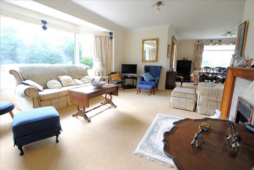 18'10" x 12'9" (5.75m x 3.89m) plus large south-facing bay window overlooking the Garden, tiled fireplace with coal-effect gas fire and timber surround, parquet flooring, opening to:-