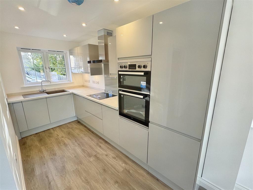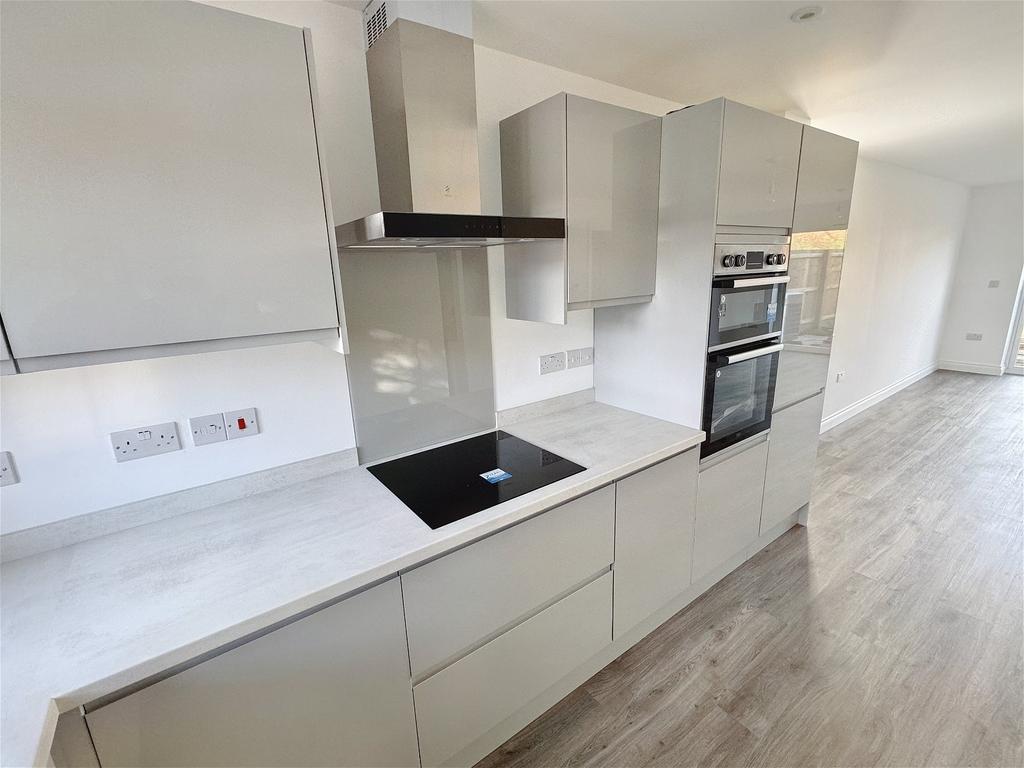 Range of units at base and wall level with work surfaces over, composite sink with mixer tap and integrated appliances ti include dishwasher, washing machine, double oven, hob with glass splashback and 70/30 fridge freezer. Double glazed window to the front aspect. Opening to living/dining area.