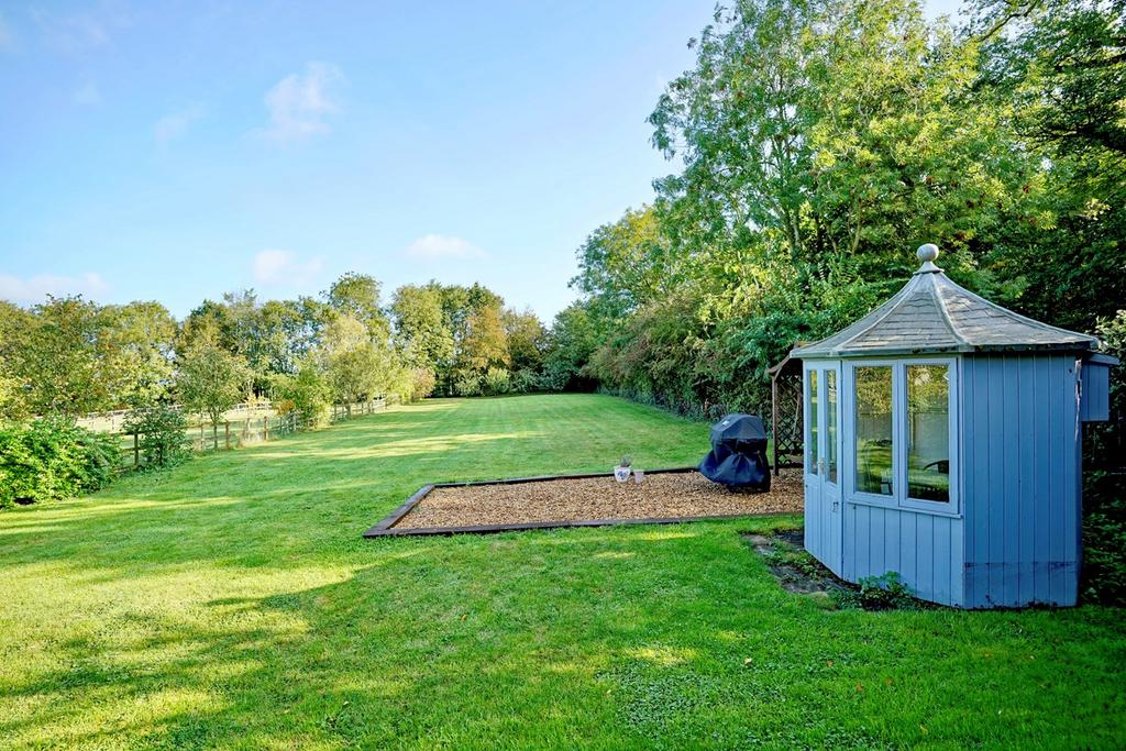 The property stands in beautifully maintained mature and private gardens with a block paved driveway providing off road parking for three vehicles and leading to the Pan Tiled Double Garage with power, lighting, twin up and over doors and new side door. There is a surrounding paved terrace extending to both sides and rear of the property with areas of lawn, outside lighting, constructed flower and shrub borders, further seating area, slate beds, outside tap, timber shed, post and rail fencing, trellis arch leading to an area of paddock of approximately one third of an acre which is rented from the Lord De Ramsey estate. The gardens are enclosed by a combination of mature screening and panel fencing offering a high degree of privacy.