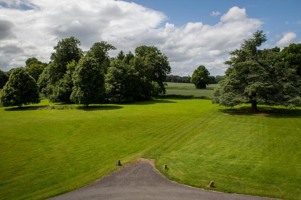 Approached via a sweeping driveway which runs around the front of the house, there is parking for multiple cars. The grounds are made up of parkland, paddocks, mature woodland and formal gardens, which total approximately 9.43 acres (3.84 hectares). To the rear of the property, there is a timber-framed outbuilding, which is currently used for storage.