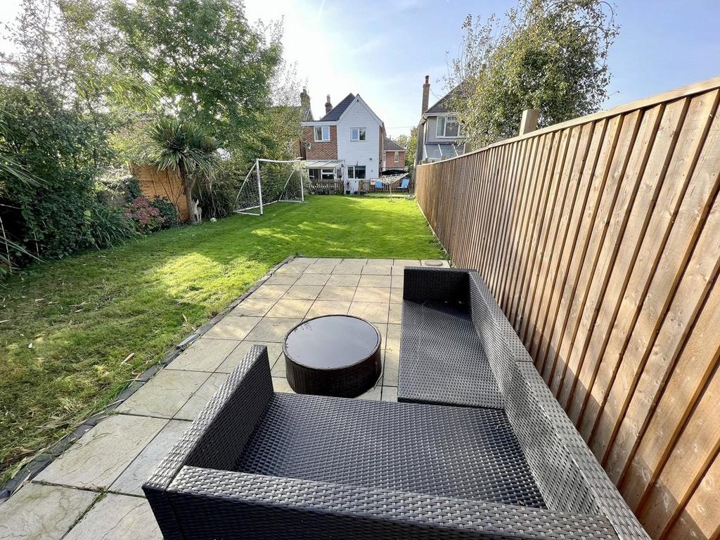 - Fabulous 100’ rear garden fully enclosed rear garden with new fencing, flat lawn, two patios and areas to enjoy the sun throughout the day