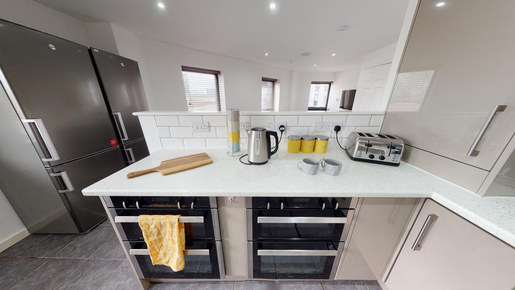 This next-level student flat offers all the comforts of home and more. The open-plan lounge and kitchen has everything covered, with a 50" smart TV, and Bluetooth ceiling speakers, a dishwasher, two ovens and two fridge freezers.