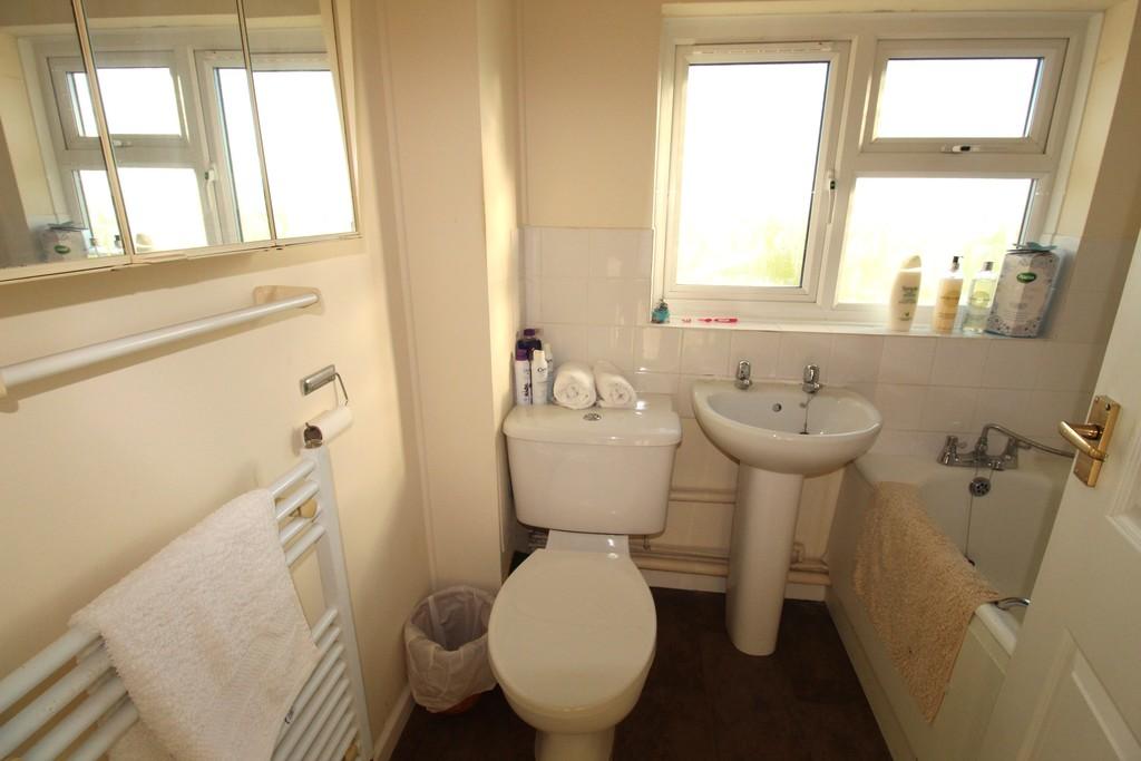 BATHROOM Upvc double glazed window to the side aspect, fitted three piece suite comprising low level Wc, pedestal wash hand basin and bath with shower attachment, heated towel rail, tiling to splash areas.