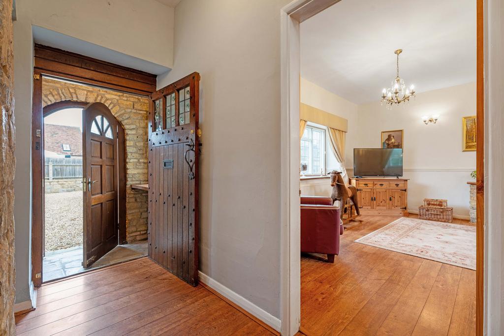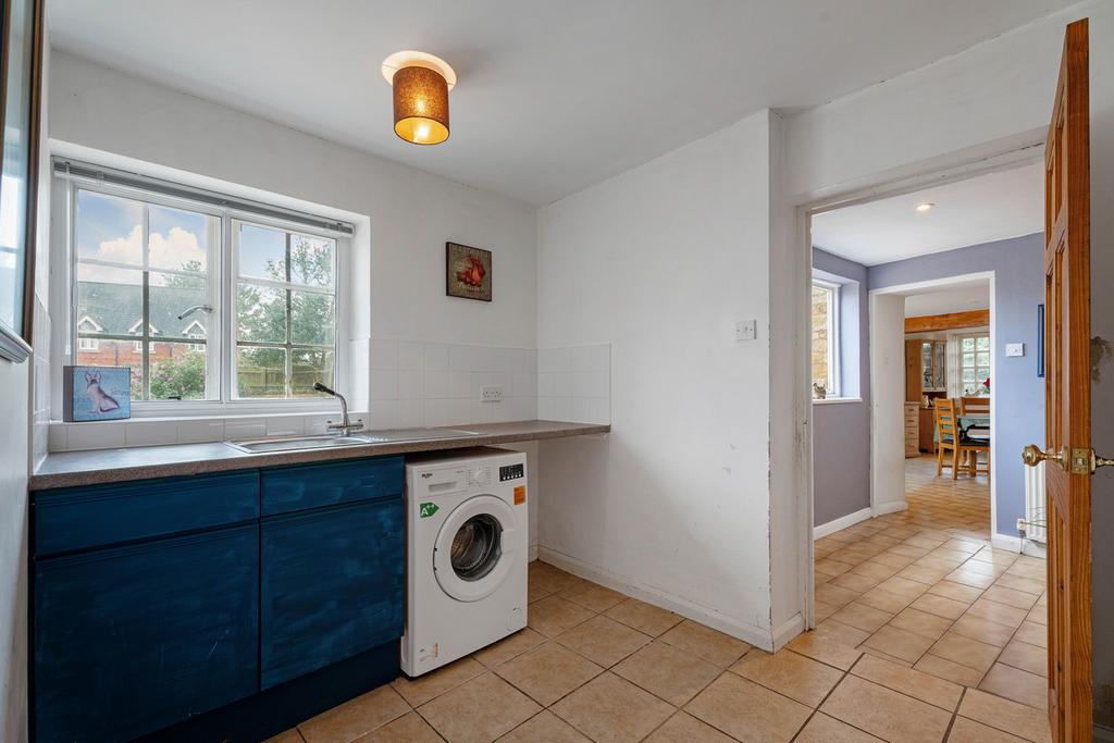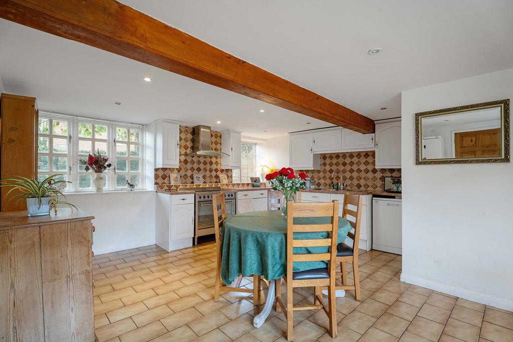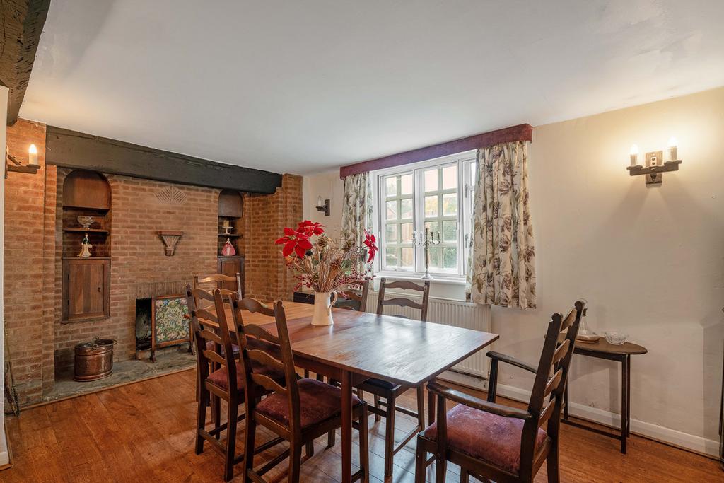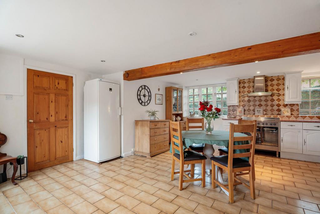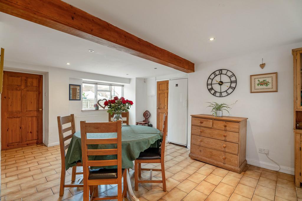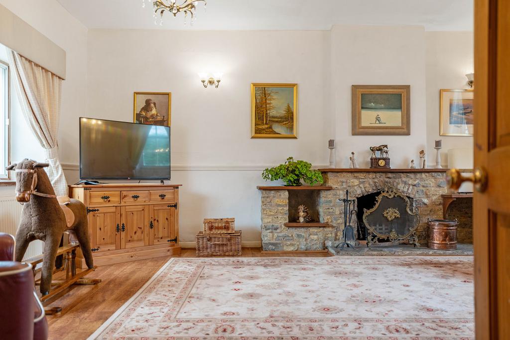 Upon entering the house, you are greeted by a warm and welcoming reception hallway that showcases the character and charm of this lovely home straightaway. Off the hall to the left is the spacious living room with a beautiful, exposed stone fireplace. Off the hallway is a separate dining room, this delightful and airy space incorporates a feature brick-built inglenook fireplace. The generous open-plan kitchen/dining area is a functional space and allows for comfortable seating and dining arrangements. It includes a comprehensive range of fitted furniture and appliances including an Indesit electric oven. There is the added benefit of a large walk-in pantry.